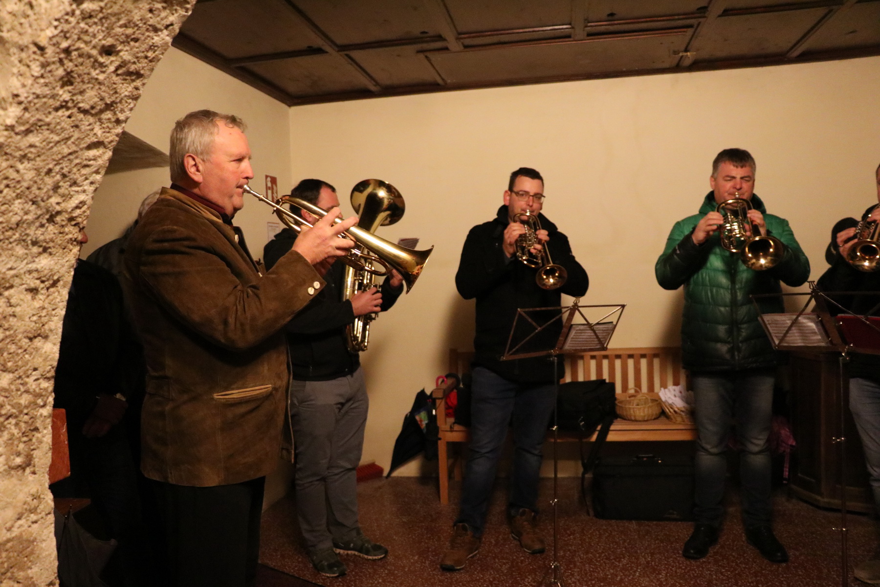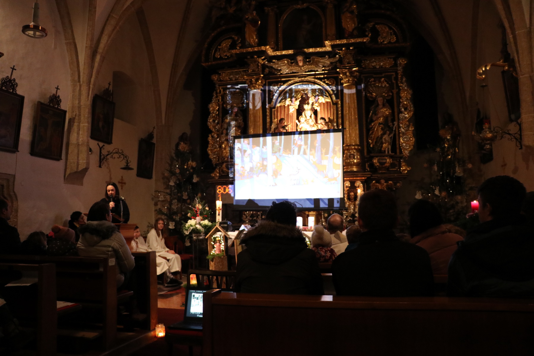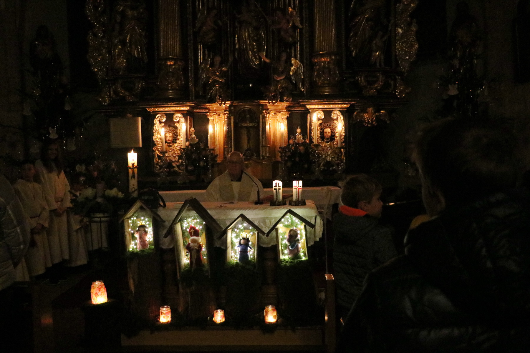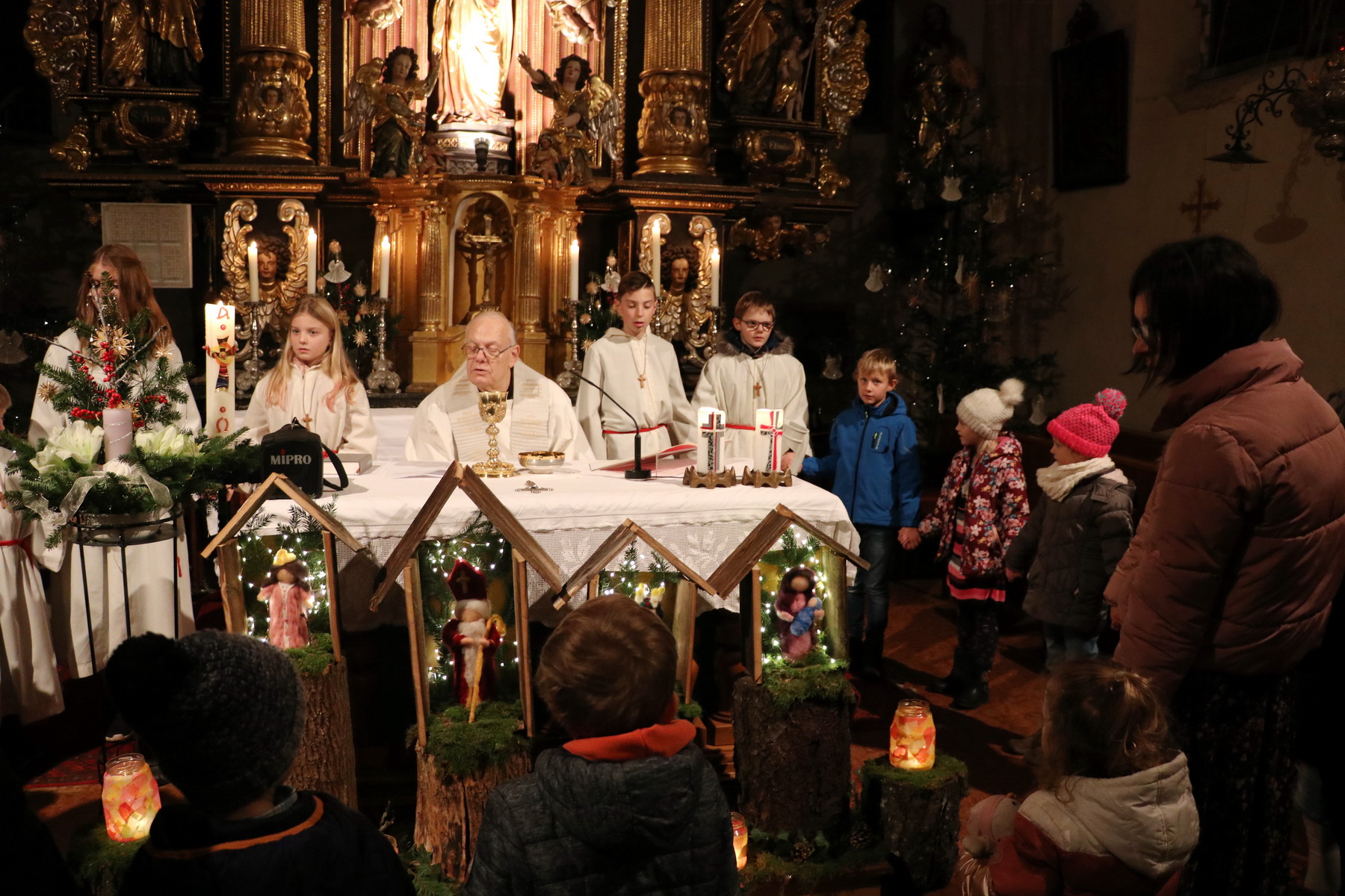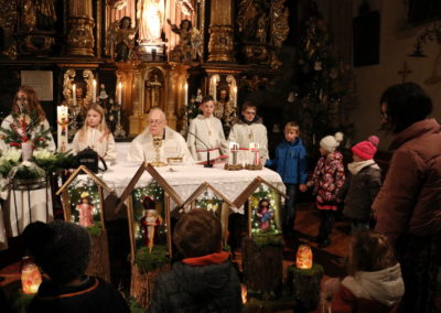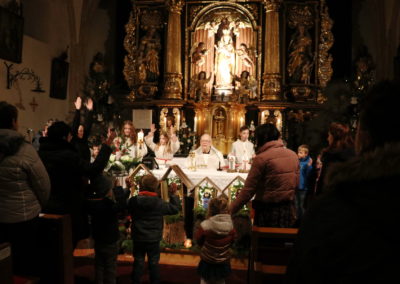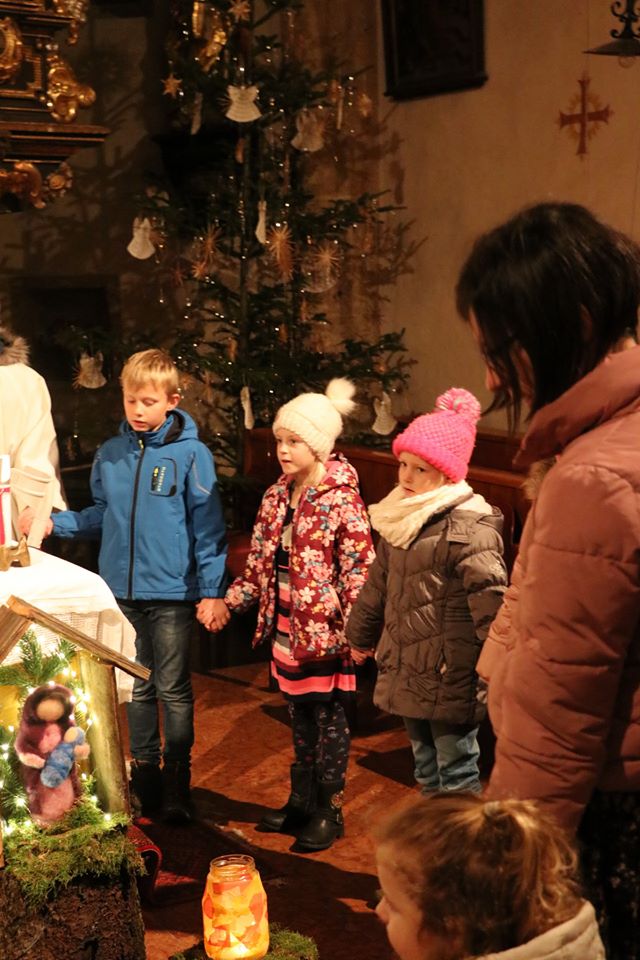 In Wippenham wurde heuer eine sehr schöne Familienmette gefeiert, bei der der Kinderliturgiekreis unter anderem mit einer Erzählung den Kindern das Weihnachtsevangelium näher gebracht hat. Sehr schön war auch die musikalische Gestaltung – Luisa-Marie und David haben vor dem Gottesdienst Weihnachtslieder gespielt, Margit (Gitarre) und Margarete (Hackbrett) haben während des Gottesdienstes musikalisch begleitet und eine kleines Ensemble des Musikvereins hat am Ende des Gottesdienstes Stille Nacht zum Besten gegeben.